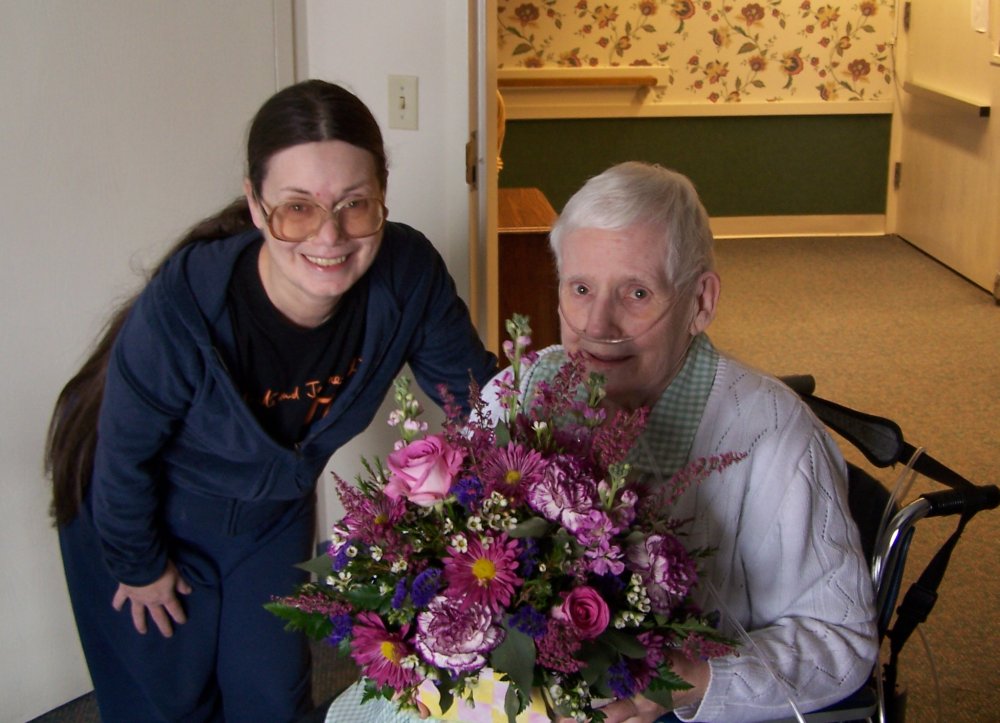 Here's a photo with Rose taken about 5 days ago, with flowers from Jan Wallace. Rose says to tell everyone how much she has appreciated their support during the last 6 weeks.