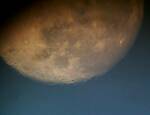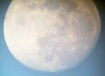 After a few terrestial warm up shots to make sure I could get the camera on target, I was anxious to take a sky shot. I swung the scope around and quickly centered on the full moon due east. The following four pictures were taken just before sundown, with the moon half-height in the north-eastern sky. It was hazy and cloudy, but the pictures show the view as I saw it through the telescope.